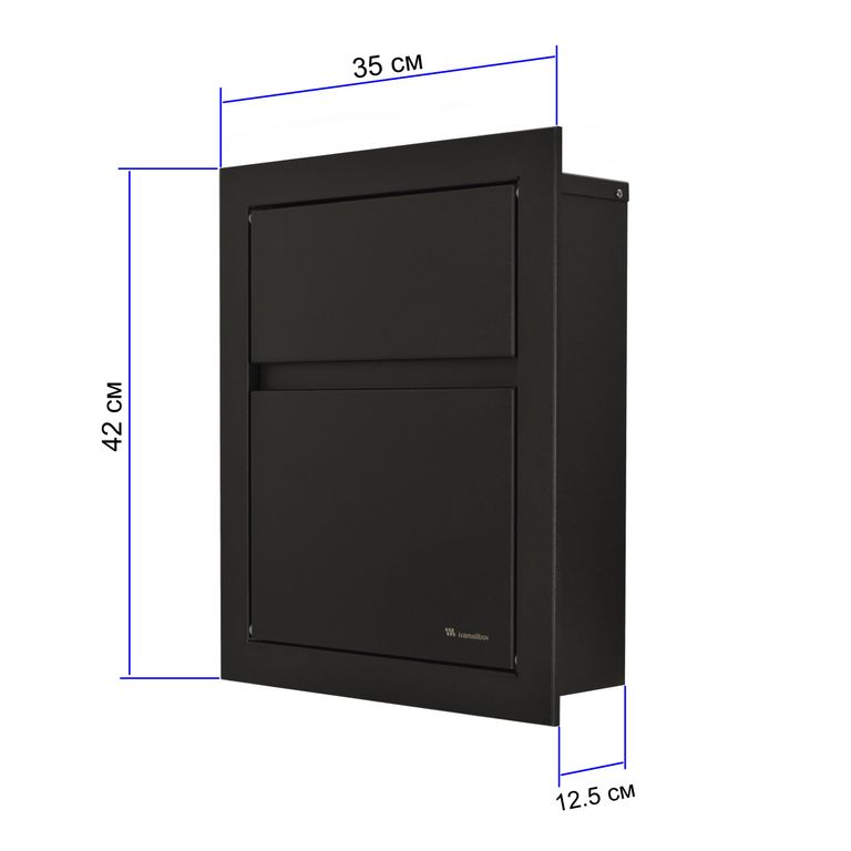 Размеры почтового ящика высота: 38.5 см глубина: 12.7 см |